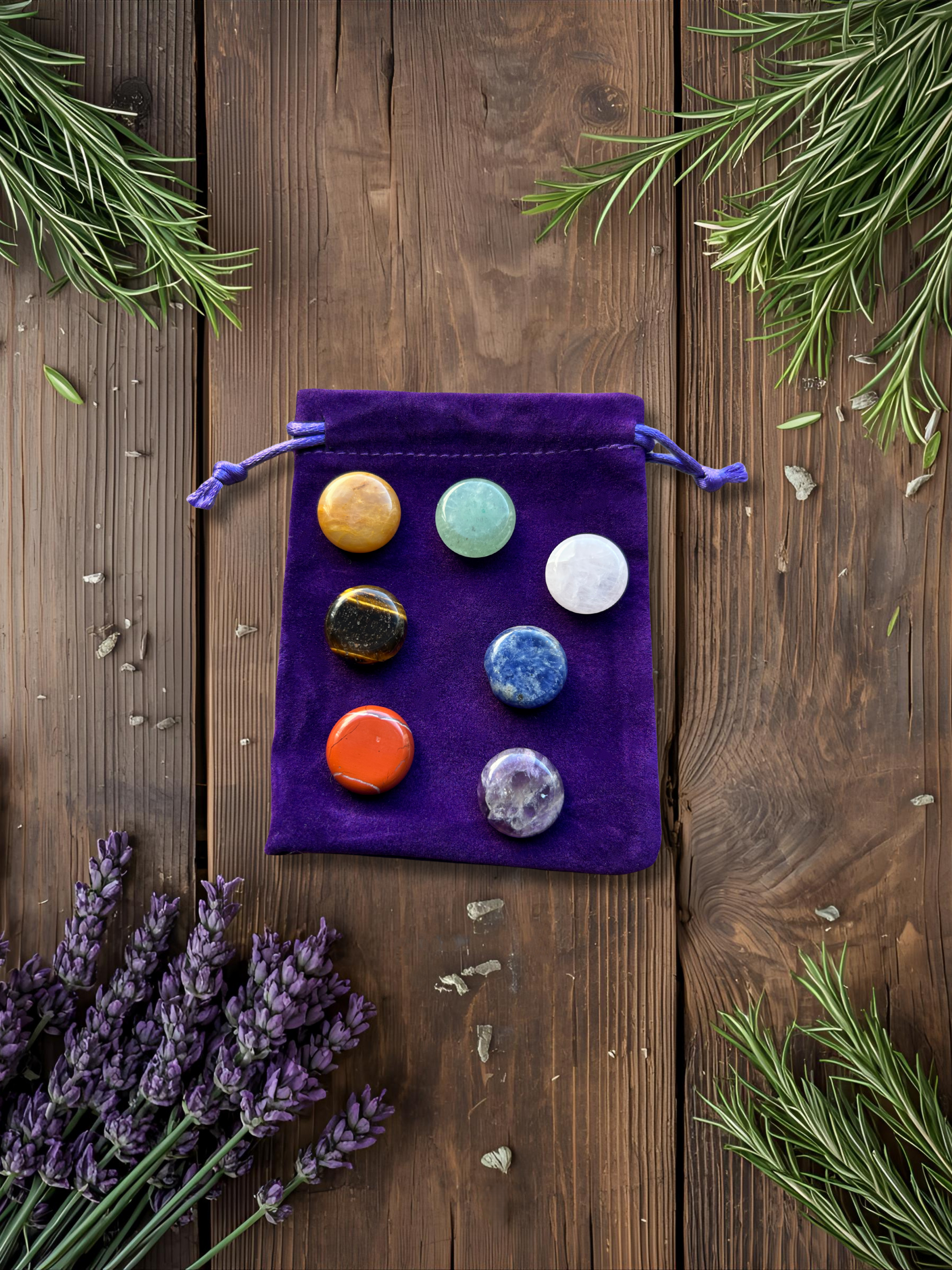 Harmonisez vos énergies grâce à ce set de 7 pierres naturelles associées aux chakras, livré dans sa pochette en velours, idéal pour la méditation, et l'équilibre au quotidien.